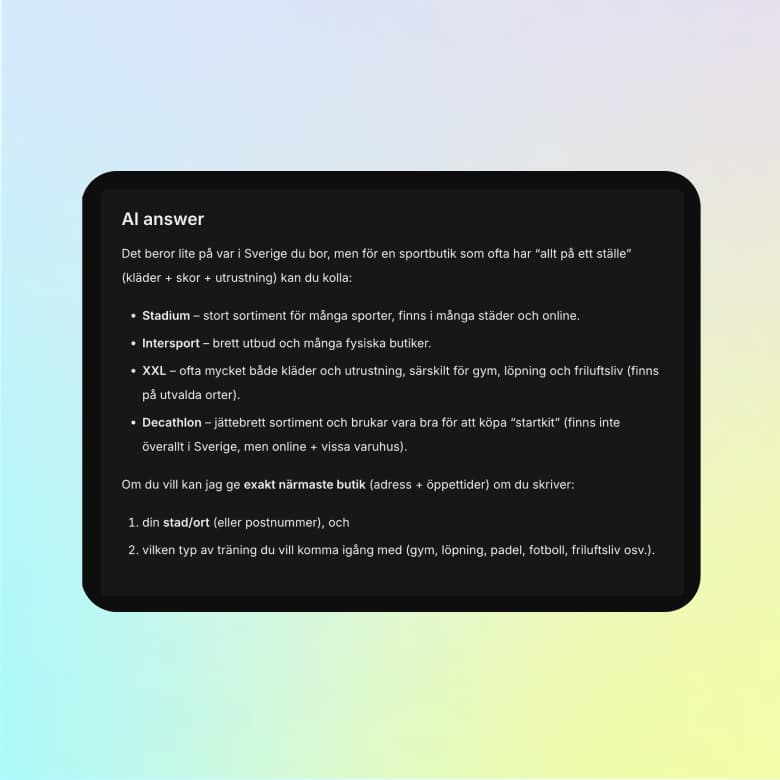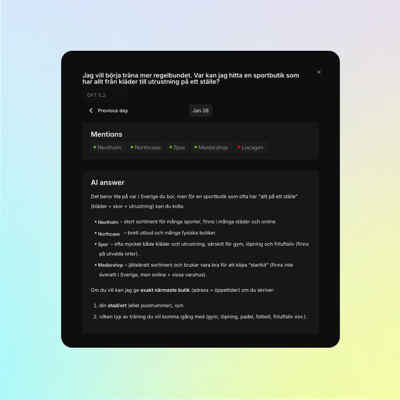 Review individual prompts and see the full AI response and which brands appear in the answers.