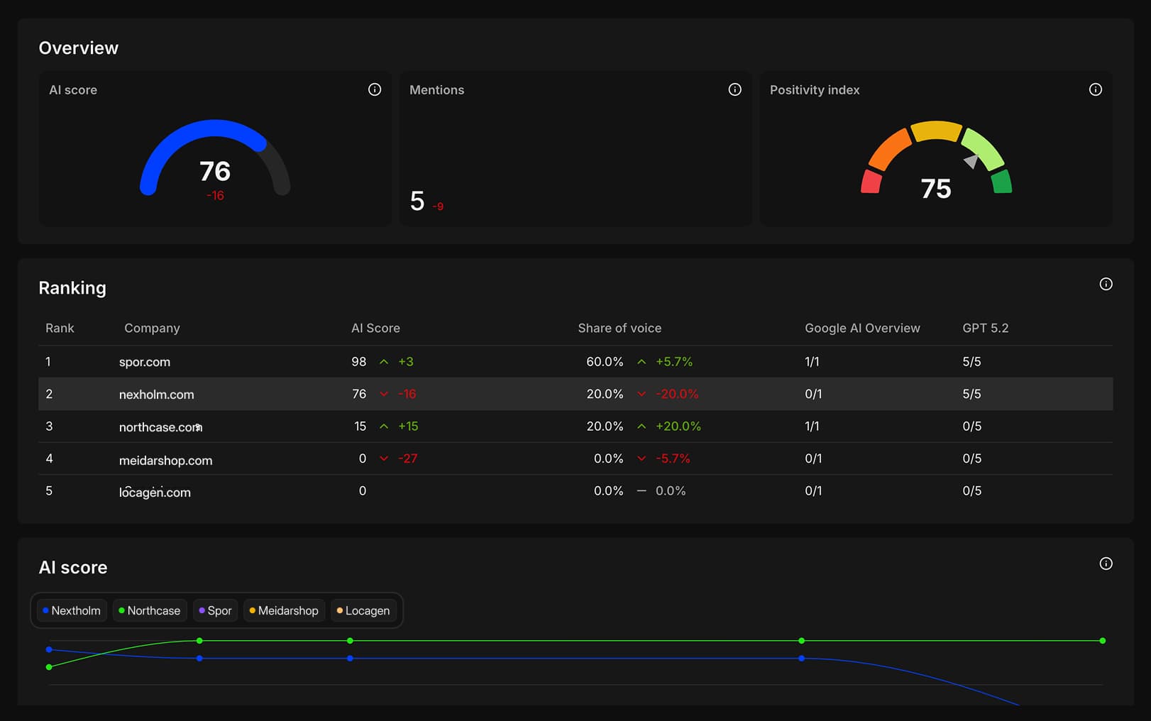 Monitor your visibility over time and compare against competitors.