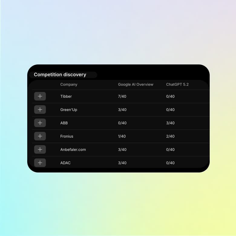 Discover competitors appearing alongside your brand in AI-generated responses.